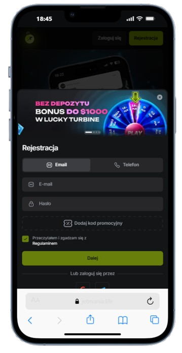 - Depozyt: Wybierz metodę płatności (np. TON lub BLIK) i wpłać minimum 600 PLN, aby otrzymać 200% bonusu.